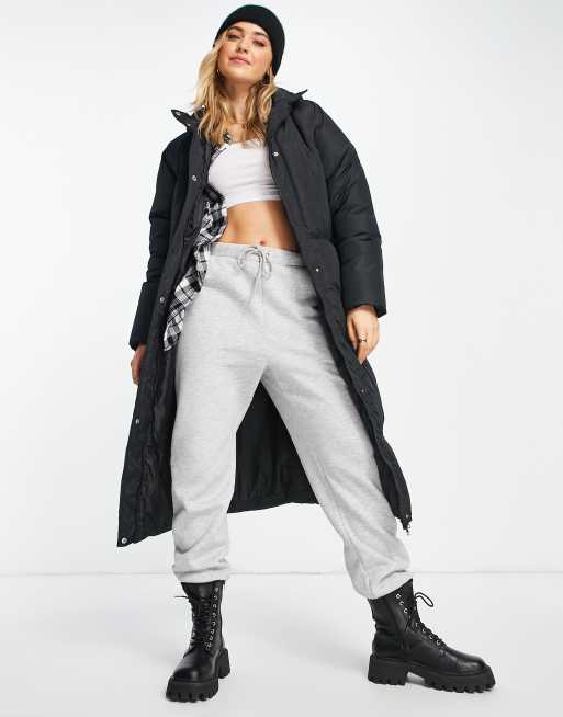Threadbare – Jodie – Lange Steppjacke in Schwarz