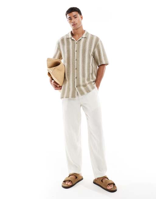 Threadbare – Kurzärmliges Hemd mit Strukturstreifen in Steinbeige und Ecru