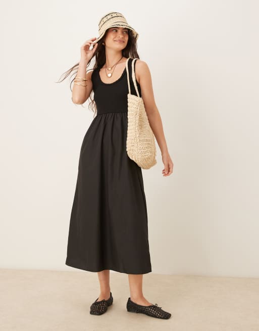 Threadbare – Maxikleid in Schwarz mit U-Ausschnitt und Popeline-Rock