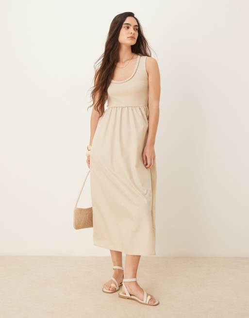 Threadbare – Maxikleid in Taupe mit U-Ausschnitt
