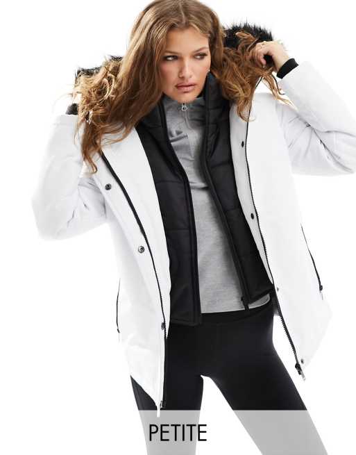 Threadbare Petite – Ski – Mantel in Weiß mit Steppfutter