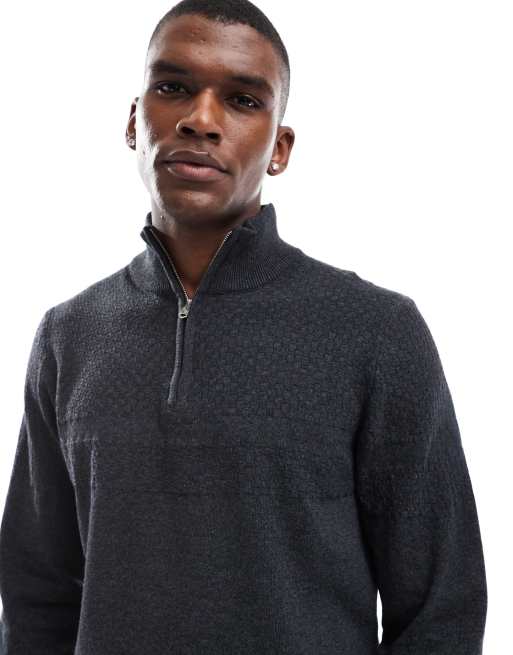 Threadbare – Pullover in Anthrazit mit kurzem Reißverschluss
