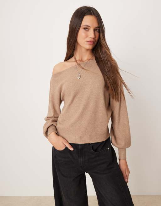Threadbare – Schulterfreies Sweatshirt in Biscuit mit lockerem Schnitt