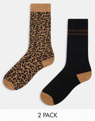 Threadbare – Ski – 2er-Pack Socken mit Leopardenmuster