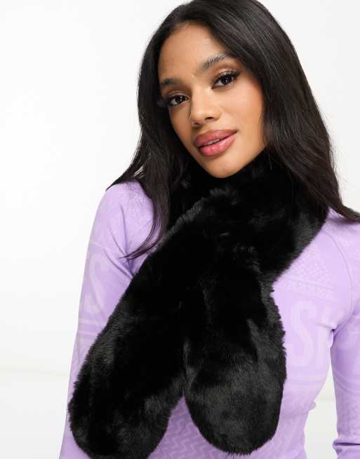 Threadbare – Ski-Schal aus Kunstpelz in Schwarz