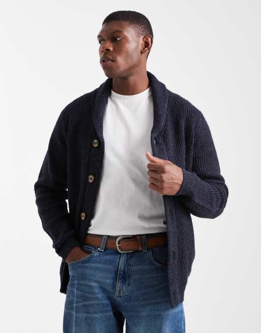 Threadbare – Strickjacke in Marineblau mit Schaldetail