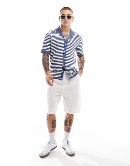 Threadbare – Strukturiertes Strickhemd in gestreiftem Blau