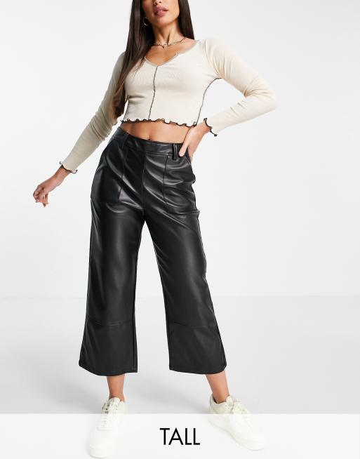 Threadbare Tall – Ariel – PU-Hose mit weitem Bein in Schwarz