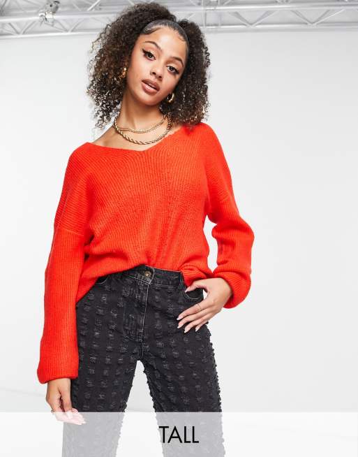 Threadbare Tall – Flauschiger Strickpullover in leuchtendem Rot