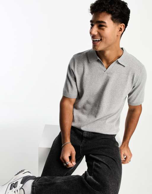 Threadbare – Trophy – Polo aus Strick in Grau mit Kragen