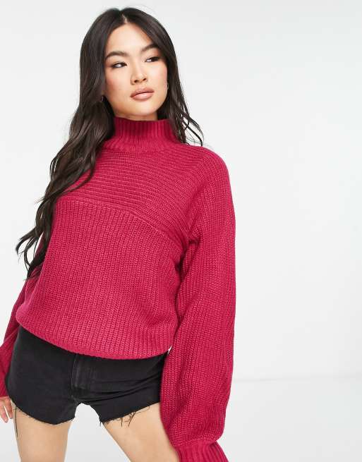 Threadbare – Veronica – Pullover in Burgunderrot mit Stehkragen