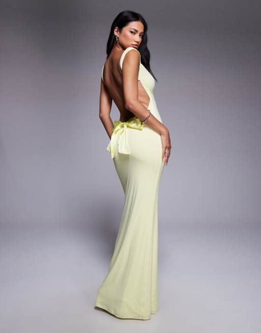 Tiger Mist – Zita – Maxikleid in Zitronengelb mit eckigem Ausschnitt, U-Ausschnitt am Rücken und Satin-Schleifendetail