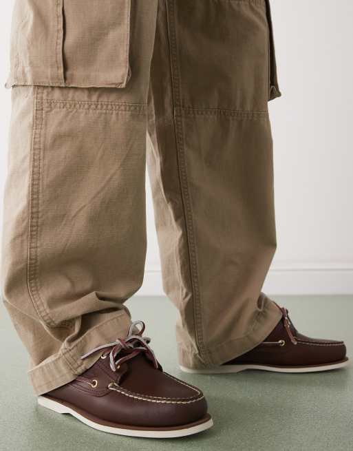 Timberland – Bootsschuhe aus dunkelbraunem Leder mit zwei Ösen