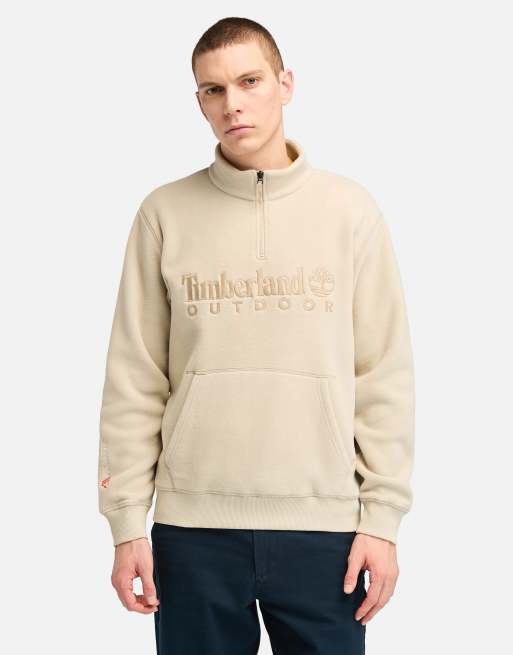Timberland – Fleece-Pullover aus Polartec 200 in Island-Fossil mit kurzem Reißverschluss und linearem Logo