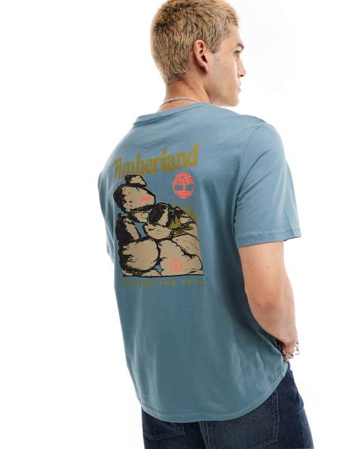 Timberland – Oversize-T-Shirt in Blau mit großem Boulder-Print auf dem Rücken, exklusiv bei ASOS