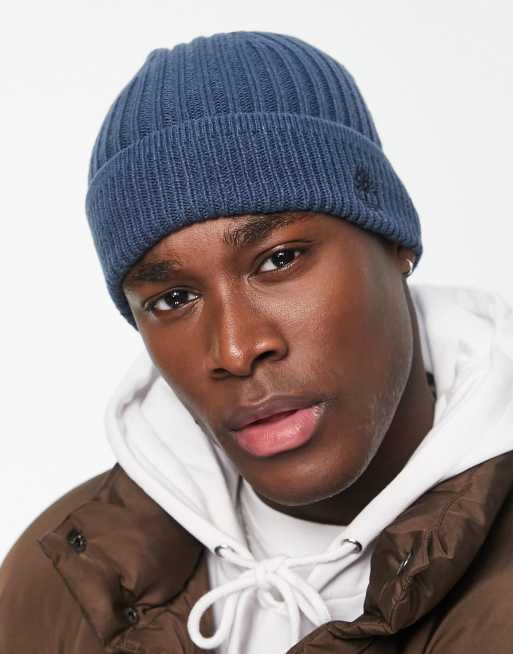 Timberland – Solid – Gerippte Strickmütze in Blau