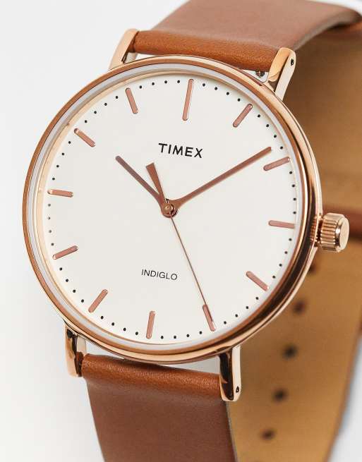 Timex – Weekender Fairfield – Uhr mit Lederarmband in Hellbraun