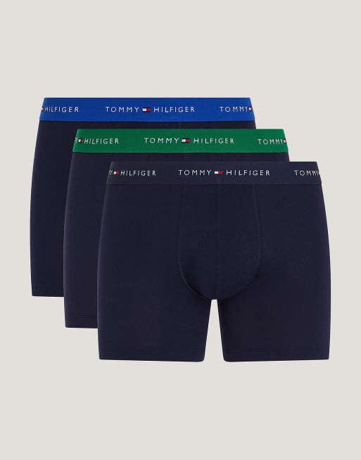 Tommy Hilfiger – 3er-Pack eng geschnittene Boxershorts in Marineblau und Grün mit Kontrastbund