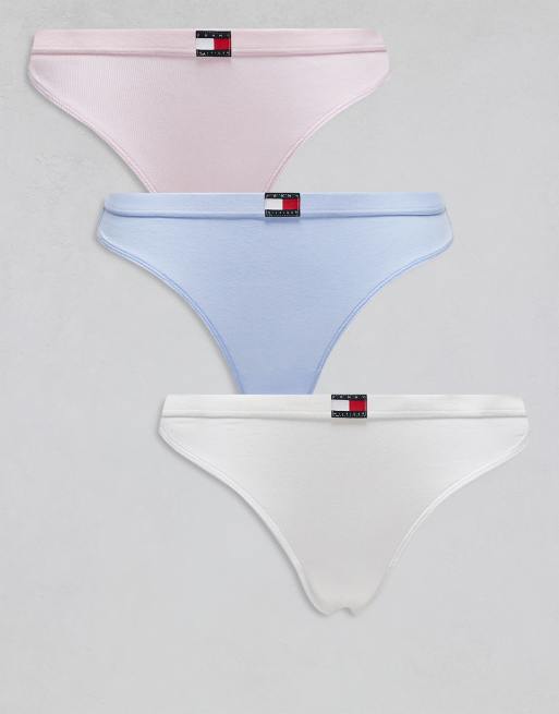 Tommy Hilfiger – 3er-Pack Stringtangas in Blau/Rosa/Weiß mit Flaggenlogo