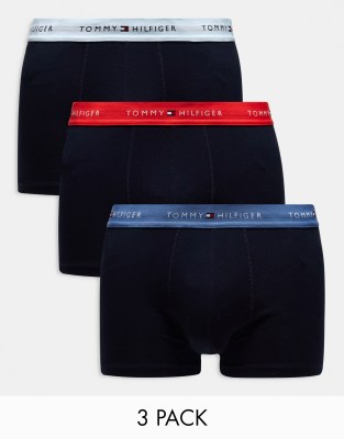 Tommy Hilfiger – 3er-Pack Unterhosen in Marineblau mit farbigem Logobund