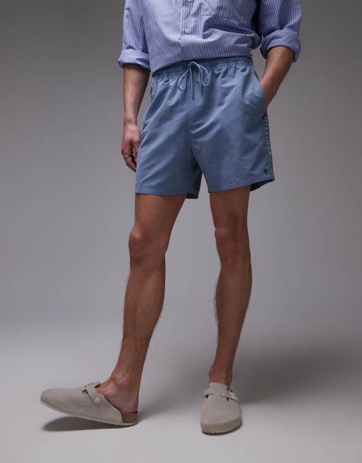 Tommy Hilfiger – Badeshorts in Blau mit Flaggenlogo, Zierband und Kordelzug