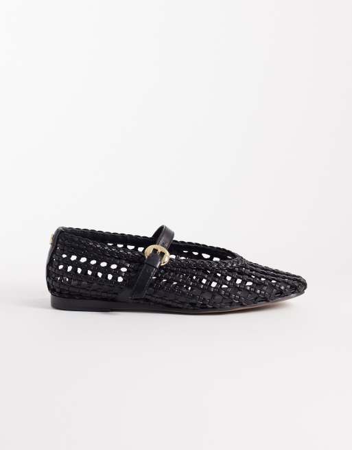 Tommy Hilfiger – Ballerinas aus Leder mit Flechtoptik in Schwarz