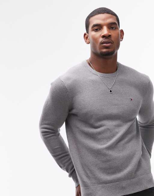 Tommy Hilfiger – Basic-Pullover in Grau mit Rundhalsausschnitt
