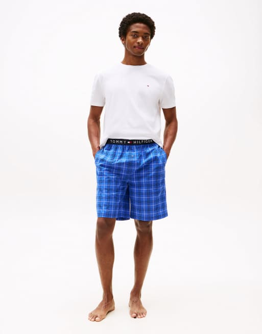 Tommy Hilfiger – Gemusterter Pyjama, bestehend aus T-Shirt und Shorts in verschiedenen Blautönen