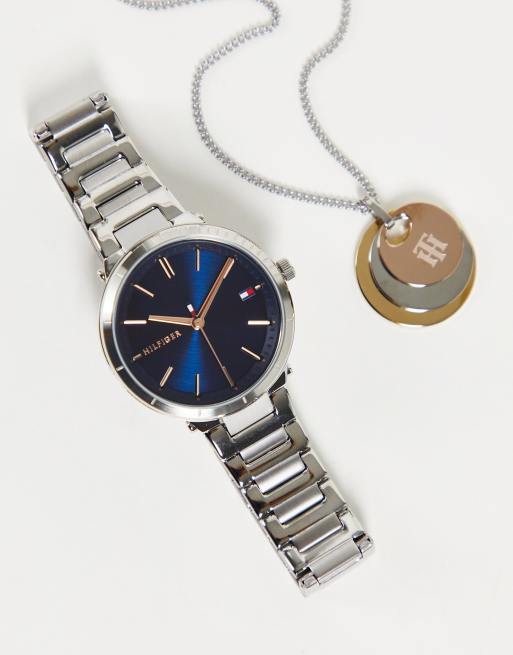 Tommy Hilfiger – Geschenkset aus Armbanduhr und Halskette in Silber mit Verpackung