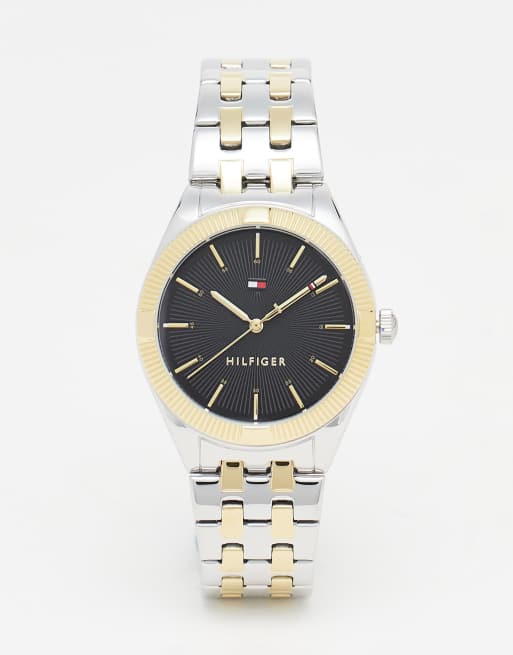 Tommy Hilfiger – Gold-/silberfarbene Armbanduhr für Damen mit Ziffernblatt in Schwarz