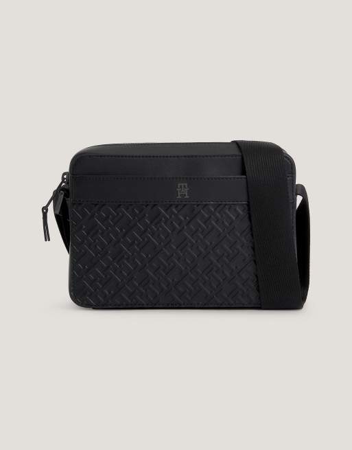 Tommy Hilfiger – Kameratasche aus Kunstleder in Schwarz mit Monogramm-Muster