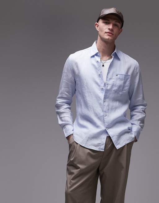 Tommy Hilfiger – Langärmliges Leinenhemd in Pastellblau