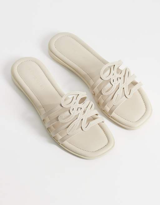 Tommy Hilfiger – Pantoletten in Weiß mit Schriftzug