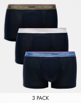 Tommy Hilfiger – Premium Essentials – 3er-Pack Unterhosen in Marineblau mit farbigem Bund