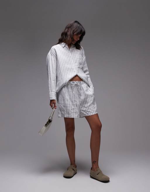 Tommy Hilfiger – Pure – Shorts aus Leinenmix in Beige mit weitem Bein