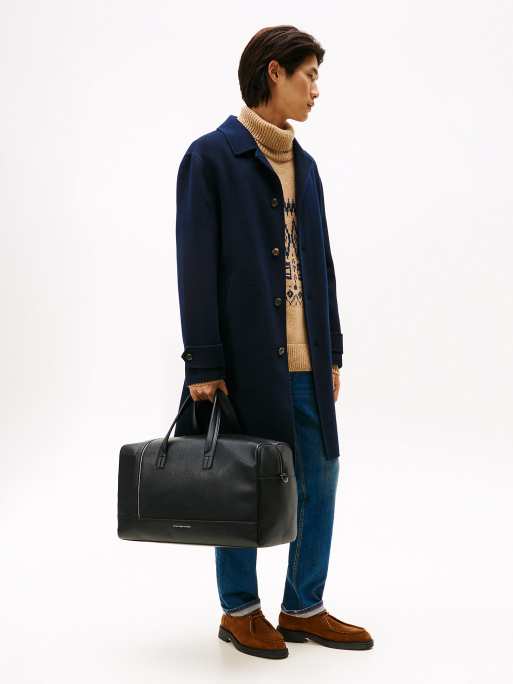 Tommy Hilfiger – Reisetasche in Schwarz mit Metalllogo und genarbter Oberfläche