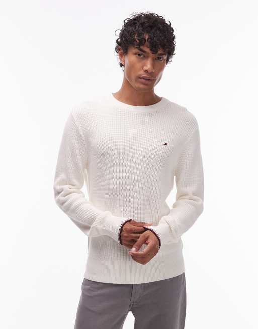 Tommy Hilfiger – Schmal zulaufender Pullover in Wollweiß mit Rundhalsausschnitt