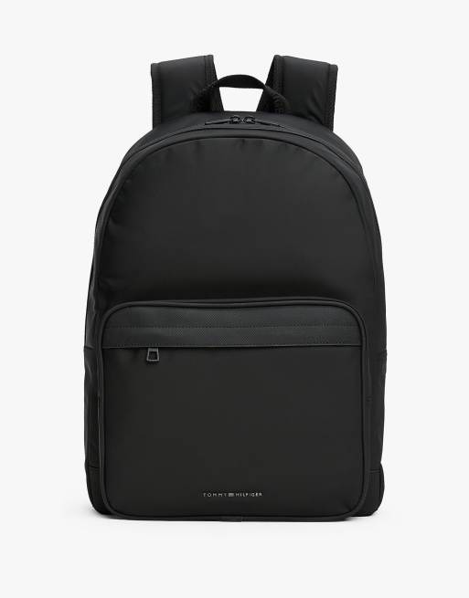 Tommy Hilfiger – Schwarzer Rucksack mit doppeltem Reißverschluss und Logo aus Metall