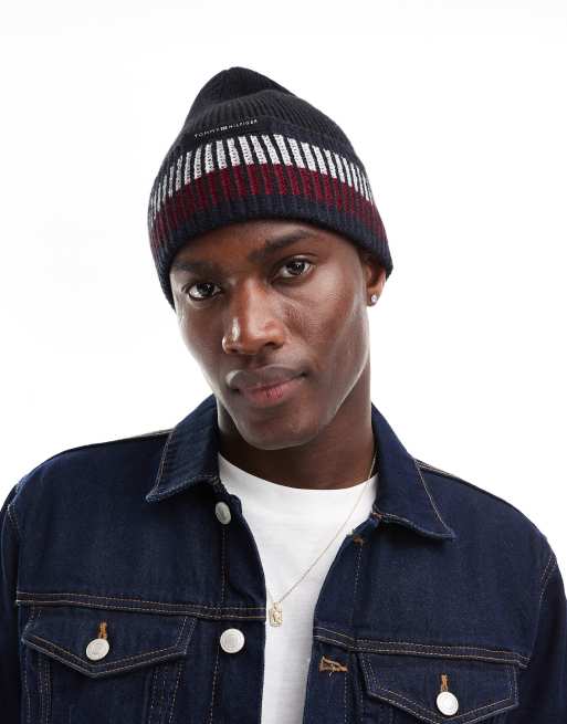Tommy Hilfiger – Strickmütze in Schwarz mit Streifen
