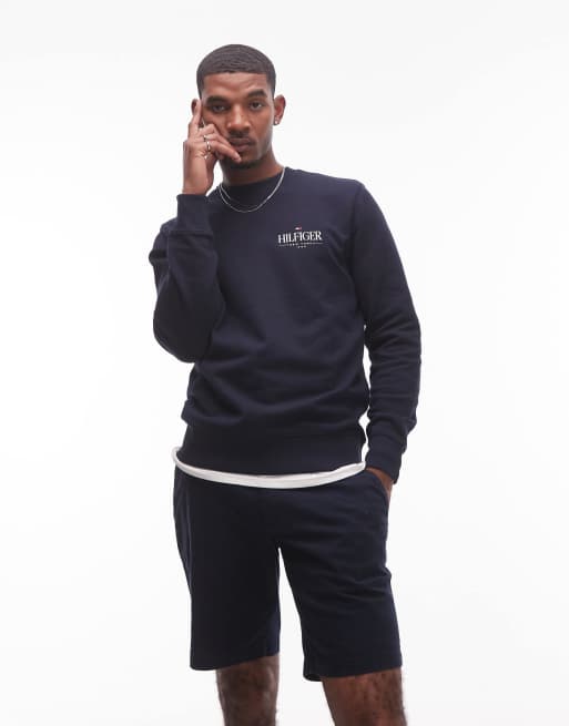 Tommy Hilfiger – Sweatshirt in Blau mit Logo und Rundhalsausschnitt