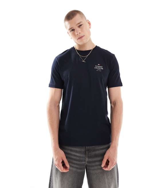 Tommy Hilfiger – T-Shirt in Dunkelgrau mit gestapeltem Logo