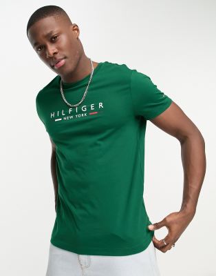 Tommy Hilfiger – T-Shirt in Grün mit „New York“-Logo