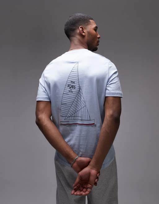 Tommy Hilfiger – T-Shirt in Hellblau mit Segelskizzen-Motiv