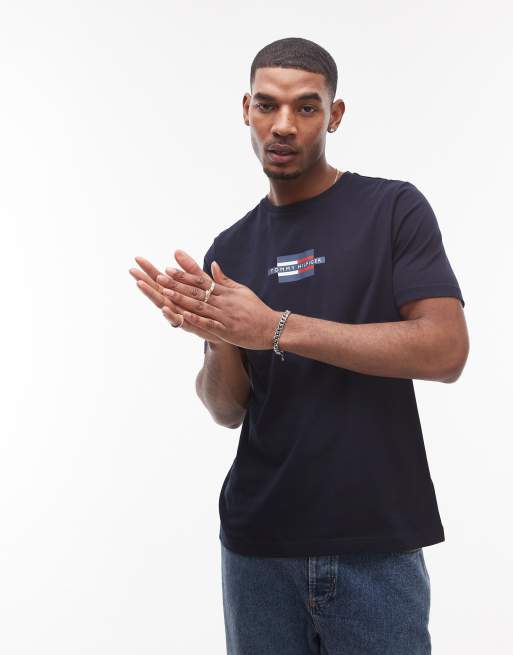 Tommy Hilfiger – T-Shirt in Marineblau mit eckigem Flaggen-Logo