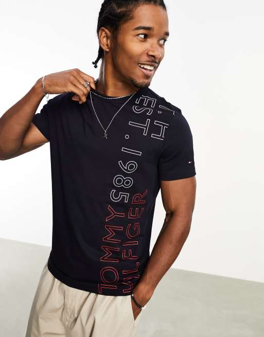 Tommy Hilfiger – T-Shirt in Marineblau mit Established-Grafikprint