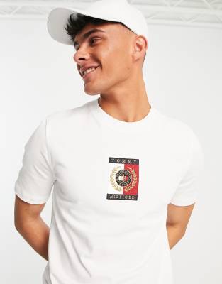 Tommy Hilfiger – T-Shirt in Weiß mit quadratischem Markenlogo