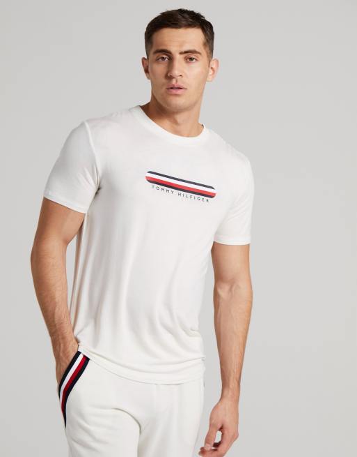 Tommy Hilfiger – T-Shirt mit Flaggenlogo auf der Brust in Cremeweiß, exklusives ASOS