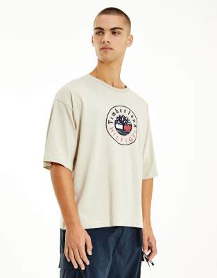 Tommy Hilfiger x Timberland – Sonderkollektion – T-Shirt in Beige mit Logo vorne