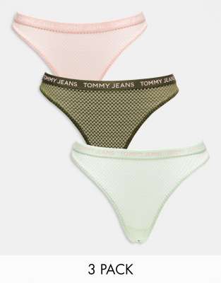 Tommy Jeans – 3er-Pack Tangas aus Spitze mit hohem Bund in verschiedenen Farben
