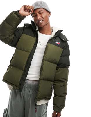 Tommy Jeans – Alaska – Steppjacke in Olivgrün mit Blockfarbendesign